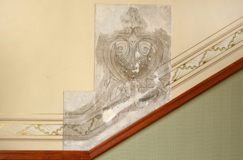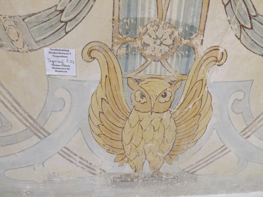 Befunderweiterungen für die Umsetzung der Rekonstruktion der bauzeitlichen Ausmalung im Wohnhaus Dickhardtstrasse 5 in Berlin Friedenau.