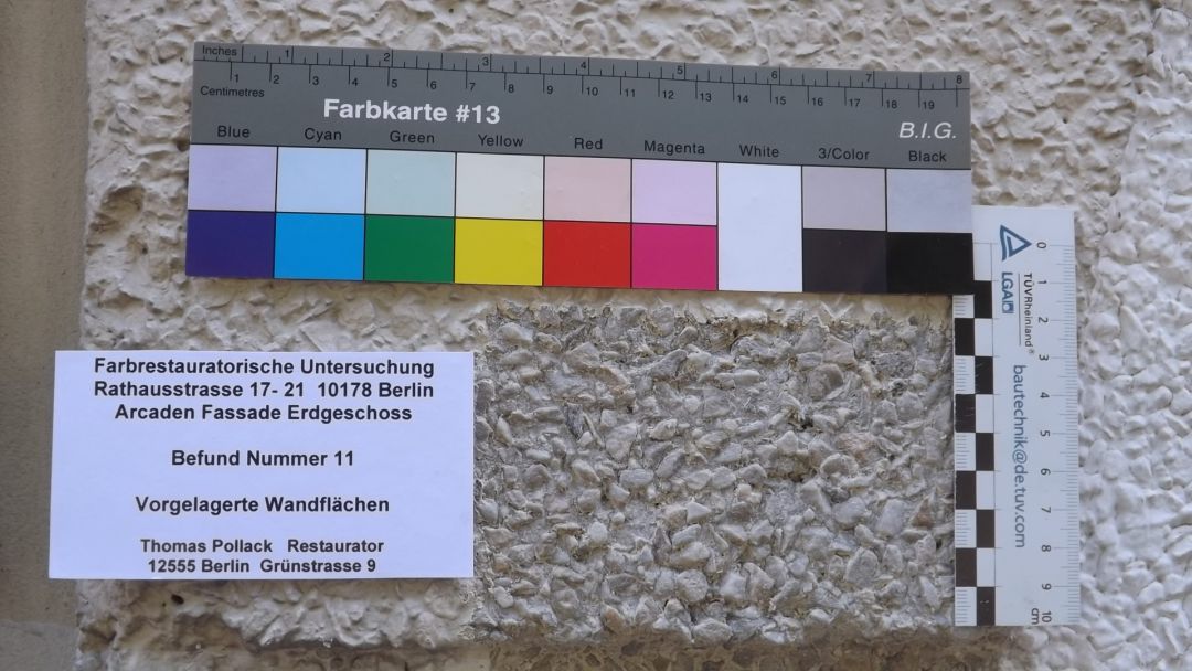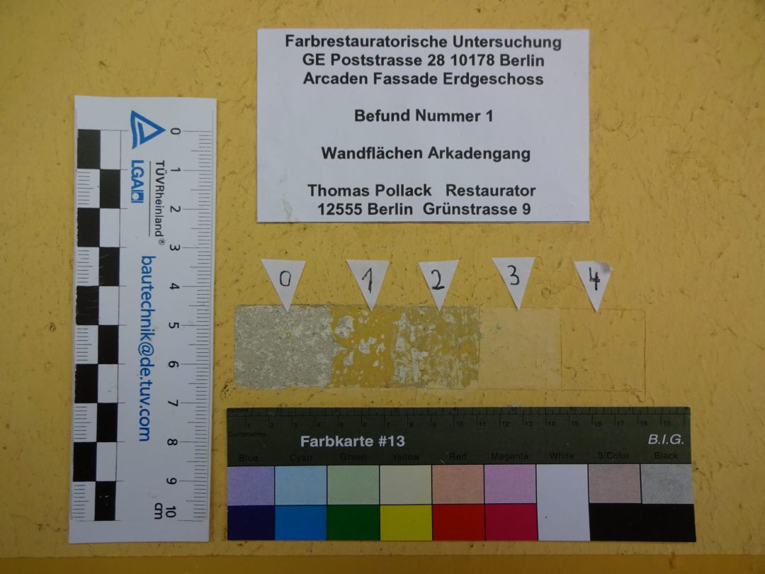 Befundung des bauzeitlichen Goldockerfarbenen Anstrichs der Arkadengänge im Nikolaiviertel