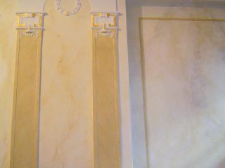 Ergänzung der Fehlstellen im Stuckmarmor durch eine Marmorimitation, Restaurierung einer Jugendstilmalerei