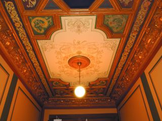 Rekonstruktion der bauzeitlichen Schablonenmalerei und der Holzimitation im Ratssaal