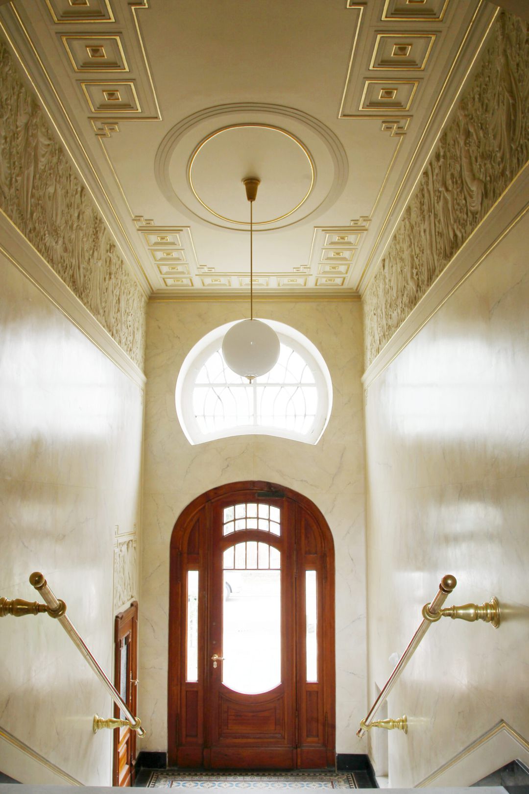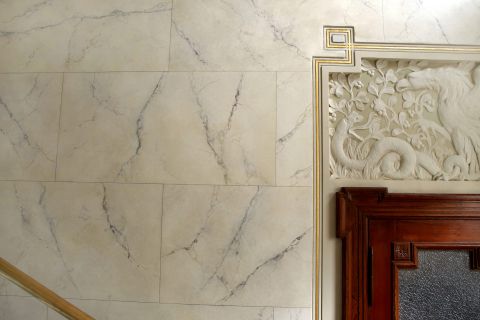 Die Marmorierung der Wandflächen wurde in bauzeitlichem Duktus rekonstruiert