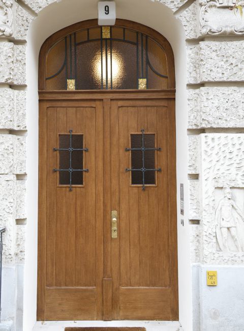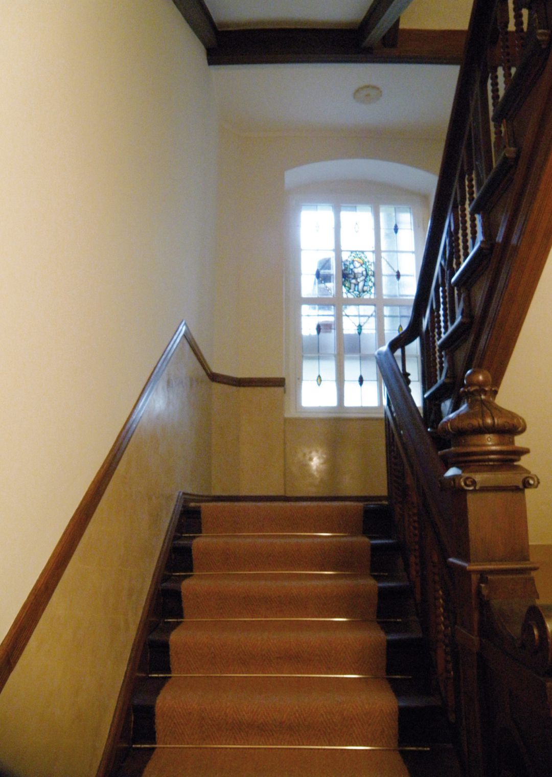 Entrée – Neufassung der Wand- und Deckenflächen, Ölvergoldung der Stuckornamentik nach Befund