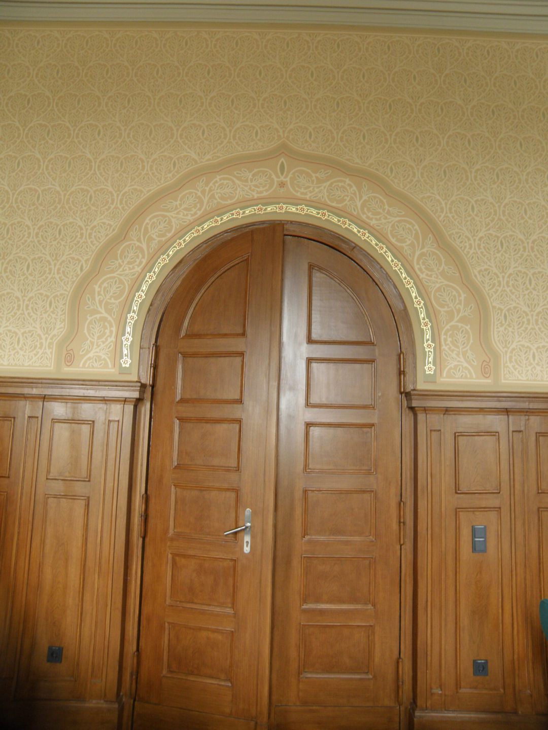 Die Oberwandflächen wurden schabloniert. Das Eingangsportal wurde gestalterisch aufgewertet